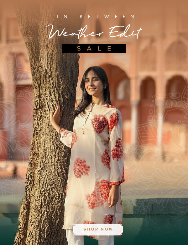 Long Floral Print Cotton Kurta with Side Slit | Comfort fit | Indiefab
