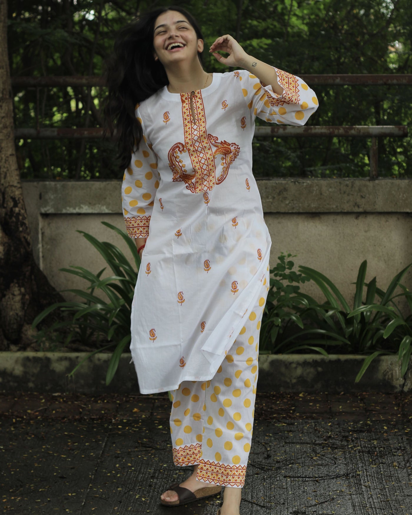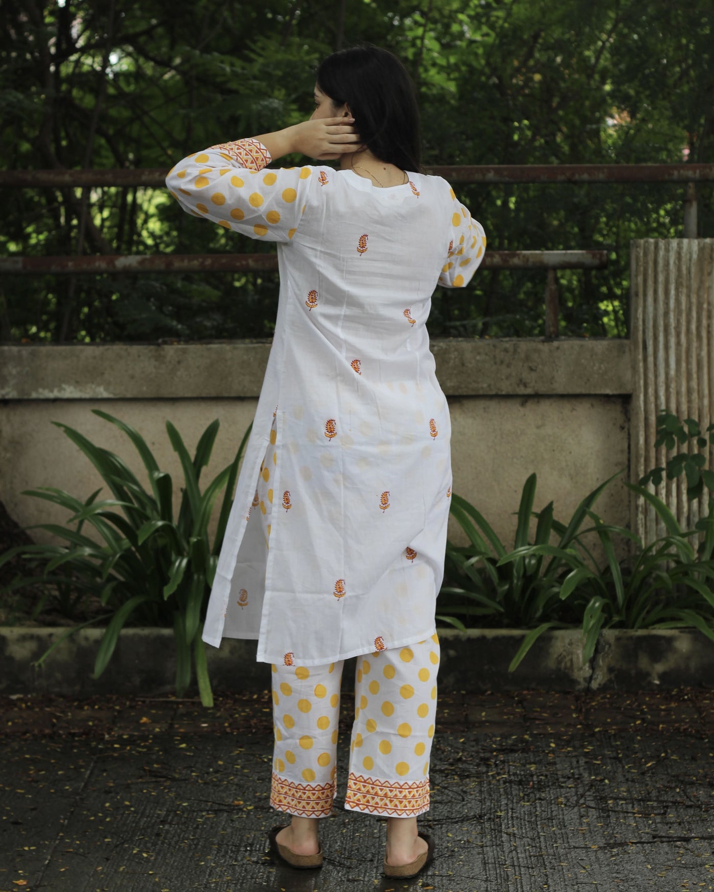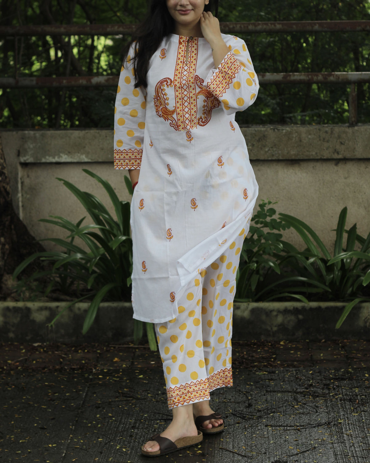 Print: Unique scattered print on top , Polka print on bottom & sleeves